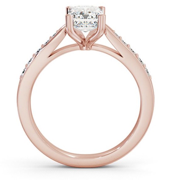 Dallas diamond engagement ring with a rotated four claw 18K Rose Gold setting. This ring features an asscher cut diamond in the centre beautifully held by a classic four prong setting, accompanied by round diamonds flowing down the tapered shank. The diamond side stones are an approximate total of 0.15ct with Clarity VS1 and Colour F. This ring is available in a range of metal options and your choice of natural or lab grown diamonds. We offer a free design service for any customised changes that you may require.