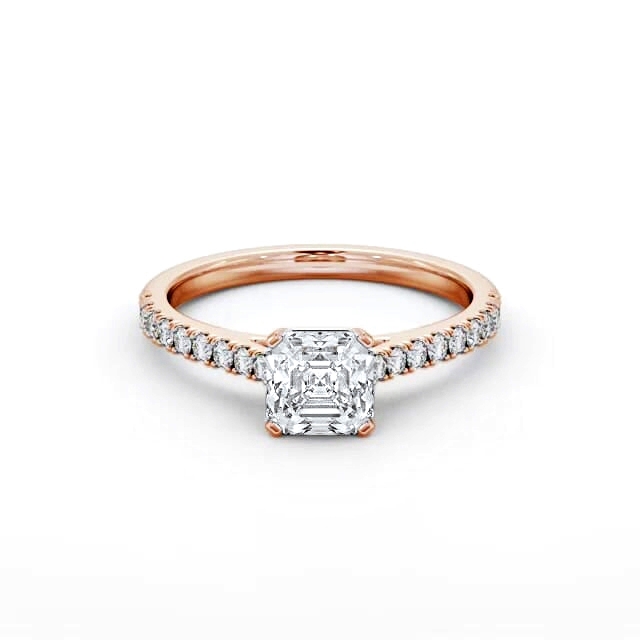 Asscher Diamond 4 Prong Engagement Ring 18K Rose Gold Solitaire | Marbella
