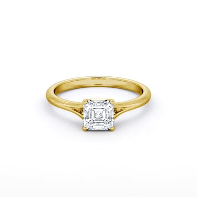 Liberty diamond engagement ring with a four claw 18K Yellow Gold setting. A glamourous asscher shaped diamond is flawlessly set at the centre of this slightly split design band. This ring is available in a range of metal options and your choice of natural or lab grown diamonds. We offer a free design service for any customised changes that you may require.
