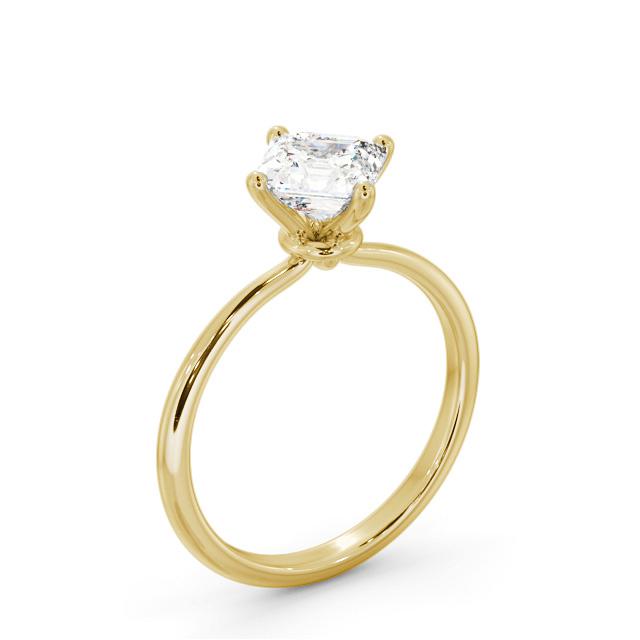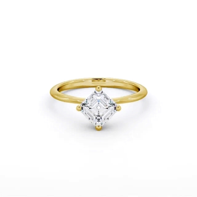 Milania diamond engagement ring with a four claw 18K Yellow Gold setting. With timeless beauty, four prongs secure an asscher shaped diamond atop a highly polished band for a sleek look. This ring is available in a range of metal options and your choice of natural or lab grown diamonds. We offer a free design service for any customised changes that you may require.