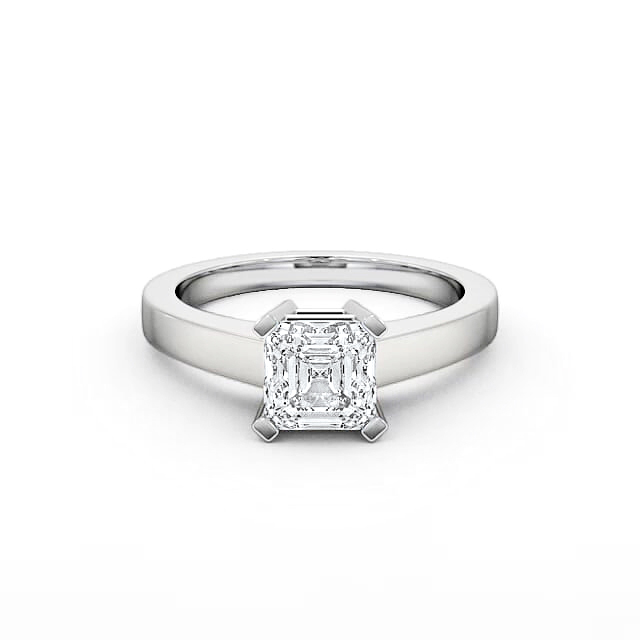 Lilian diamond engagement ring with a four claw 9K White Gold setting. Unique and splendid, this engagement ring features an asscher shaped diamond set in a four prong setting with a mid band width of 2.2mm. This ring is available in a range of metal options and your choice of natural or lab grown diamonds. We offer a free design service for any customised changes that you may require.