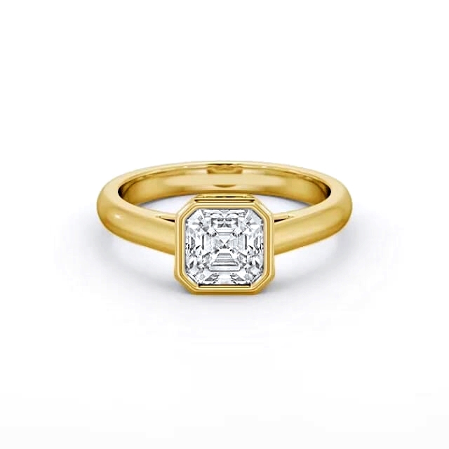 Asscher Diamond Bezel Setting Engagement Ring 9K Yellow Gold Solitaire | Alexis
