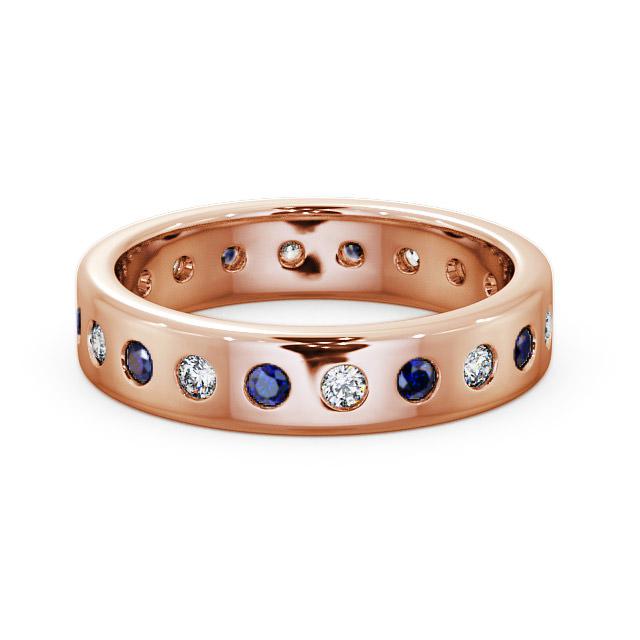Zaira blue sapphire and diamond 0.70ct wedding ring in a 18K Rose Gold setting. Remarkably divine, this eternity ring features alternating 0.40 Carat round blue sapphires and 0.30 Carat round diamonds bezel set on a polished band for an eternal shimmer. This ring is available in a range of metal options with AAA grade gemstone. We offer a free design service for any customised changes that you may require.
