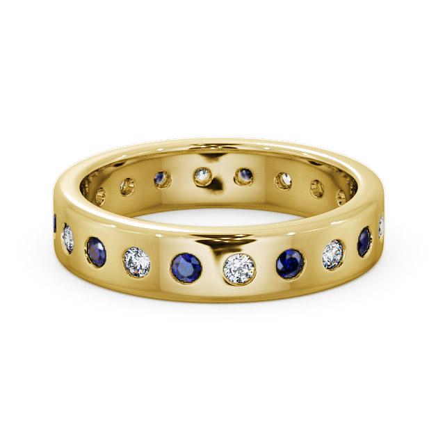 Zaira blue sapphire and diamond 0.70ct wedding ring in a 9K Yellow Gold setting. Remarkably divine, this eternity ring features alternating 0.40 Carat round blue sapphires and 0.30 Carat round diamonds bezel set on a polished band for an eternal shimmer. This ring is available in a range of metal options with AAA grade gemstone. We offer a free design service for any customised changes that you may require.