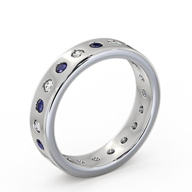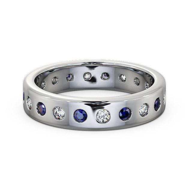 Zaira blue sapphire and diamond 0.70ct wedding ring in a Palladium setting. Remarkably divine, this eternity ring features alternating 0.40 Carat round blue sapphires and 0.30 Carat round diamonds bezel set on a polished band for an eternal shimmer. This ring is available in a range of metal options with AAA grade gemstone. We offer a free design service for any customised changes that you may require.