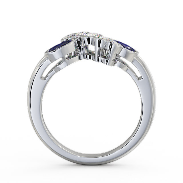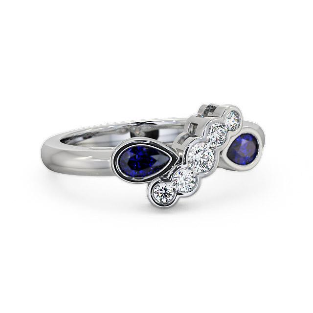 Kensington blue sapphire and diamond 1.00ct ring in a Palladium setting. This stunning ring features a beautiful diagonal array of five round diamonds guarded by a dazzling pear-shaped blue sapphires on either side. Sapphires total weight is 0.40 Carat and diamonds weighs 0.20 Carat in total. This ring is available in a range of metal options with AAA grade gemstone. We offer a free design service for any customised changes that you may require.