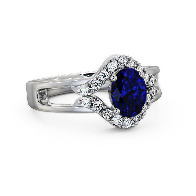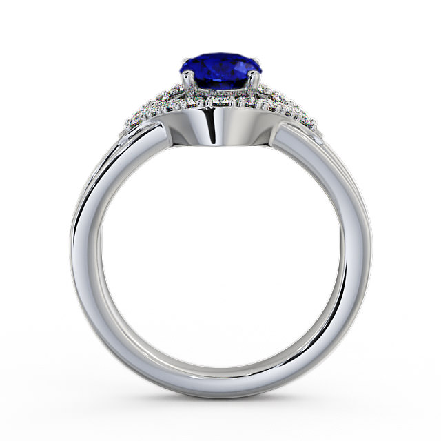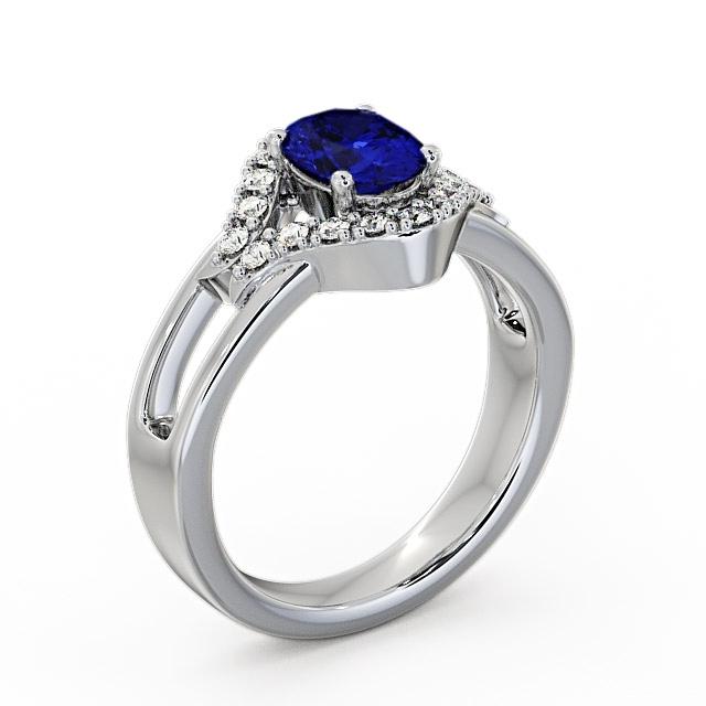 Lilibeth blue sapphire and diamond 1.18ct ring in a 18K White Gold setting. Defined by modern elegance, this beautiful oval shaped blue sapphire gemstone ring is augmented by a halo of sparkling round diamonds. Sapphire weighs 1.00 Carat and diamonds are of 0.18 Carat total weight. This ring is available in a range of metal options with AAA grade gemstone. We offer a free design service for any customised changes that you may require.