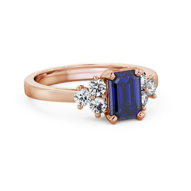 Melina blue sapphire and diamond 1.51ct ring in a 18K Rose Gold setting. Truly refined, this gemstone and diamond ring showcases 1.15 Carat emerald shaped blue sapphire centre stone complemented by six sparkling round diamonds with a 0.36 Carat total weight. This ring is available in a range of metal options with AAA grade gemstone. We offer a free design service for any customised changes that you may require.