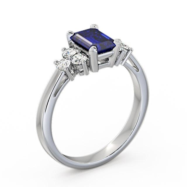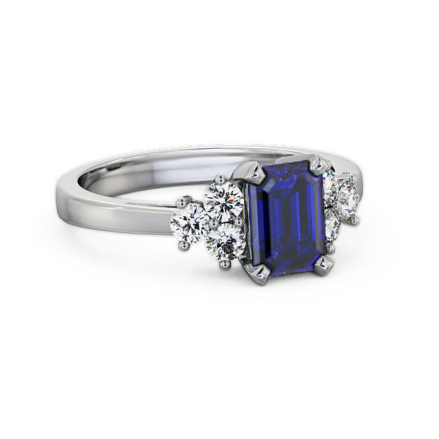 Melina blue sapphire and diamond 1.51ct ring in a Platinum setting. Truly refined, this gemstone and diamond ring showcases 1.15 Carat emerald shaped blue sapphire centre stone complemented by six sparkling round diamonds with a 0.36 Carat total weight. This ring is available in a range of metal options with AAA grade gemstone. We offer a free design service for any customised changes that you may require.