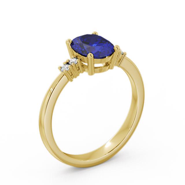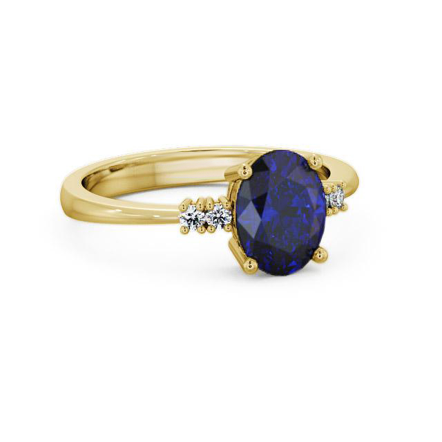Zina blue sapphire and diamond 1.61ct ring in a 18K Yellow Gold setting. Electrifying 1.55 Carat oval shaped blue sapphire gemstone is cradled by four round shaped 0.06 Carat total weight diamonds to add extra detailing and sparkle to this ring. This ring is available in a range of metal options with AAA grade gemstone. We offer a free design service for any customised changes that you may require.