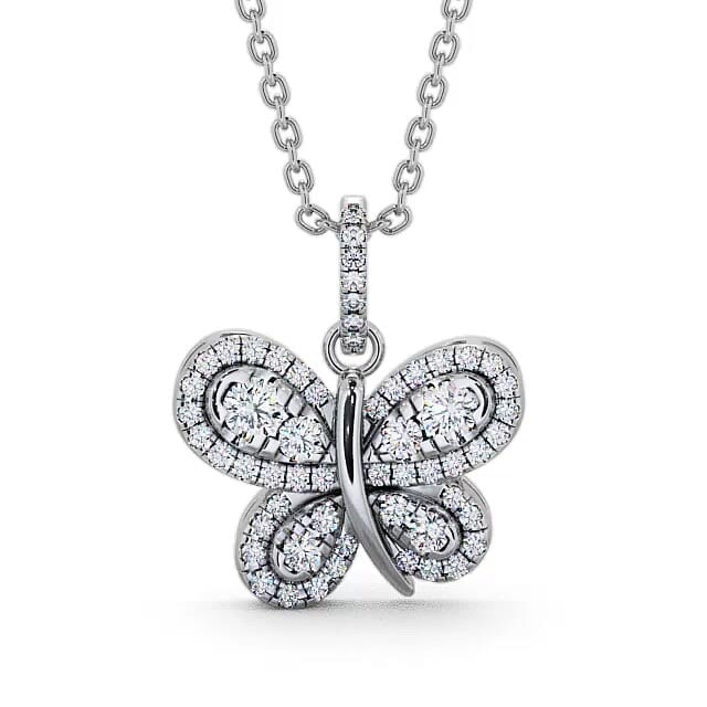 Winifred butterfly shaped diamond 0.55 Carat pendant in 9K White Gold. Perfectly stunning, this pendant showcases beautiful butterfly design encrusted with dazzling round diamonds. This pendant is available in a range of metal and chain options with your choice of natural or lab grown diamonds. We offer a free design service for any customised changes that you may require.