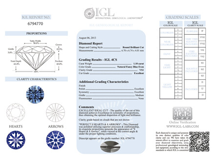 A number of different labs are used for our SDC certified diamonds. Those labs include but are not limited to WGI (World Gemological Institute), IGL (International Gemological Laboratories) and IGR (International Gemological Reports).