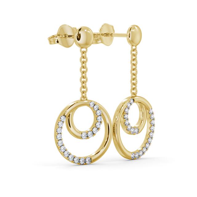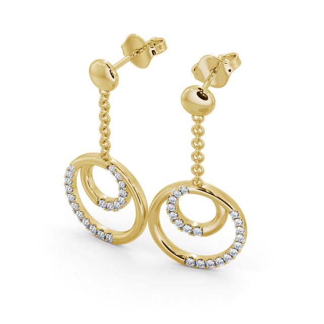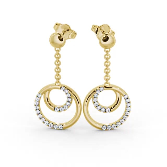 Kenia circle diamond earrings in 9K Yellow Gold. Exceedingly charming and elegant, these drop earrings showcase dangling circles, surrounded with sparkling round diamonds of 0.40 Carat total weight. The total diamond weight is based on per pair. These earrings are available in a range of metal options and your choice of natural or lab grown diamonds. We offer a free design service for any customised changes that you may require.