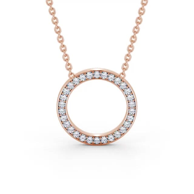 Everley circle diamond pendant in 18K Rose Gold. Graceful and gorgeous, this pendant features a circle design adorned with sparkling round diamonds. This pendant is available in a range of metal and chain options with your choice of natural or lab grown diamonds. We offer a free design service for any customised changes that you may require.
