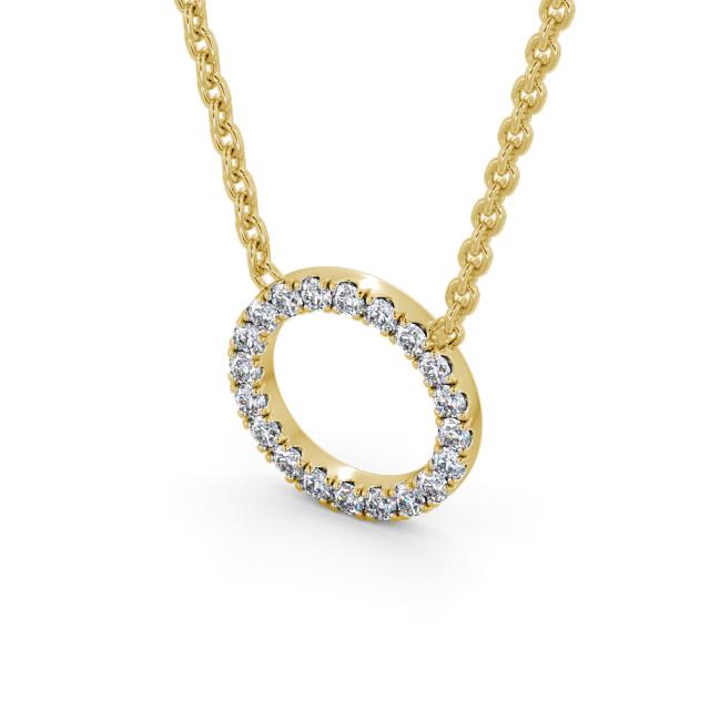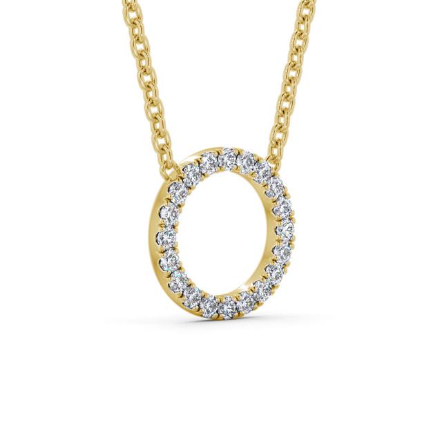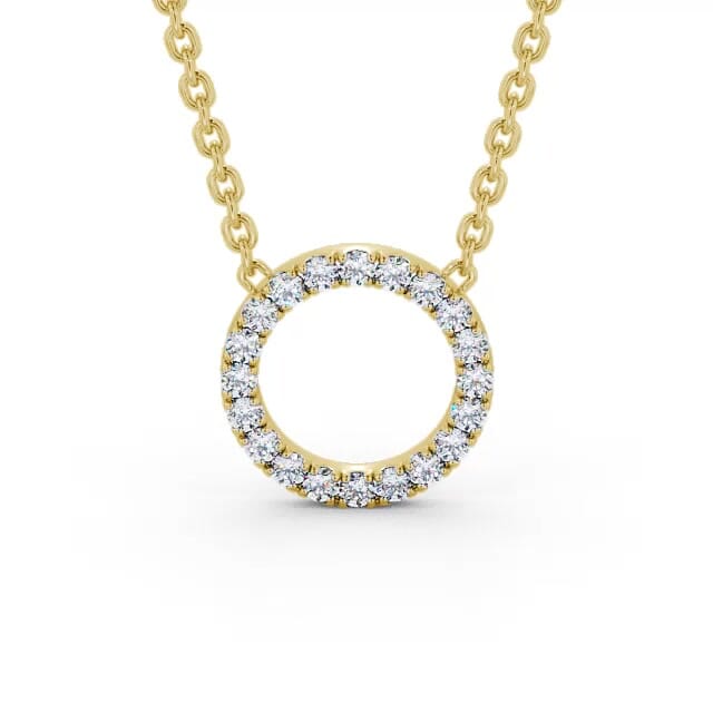 Lucille circle diamond pendant in 18K Yellow Gold. Shimmering round diamonds are securely prong-set in this fabulous circle pendant. This pendant is available in a range of metal and chain options with your choice of natural or lab grown diamonds. We offer a free design service for any customised changes that you may require.