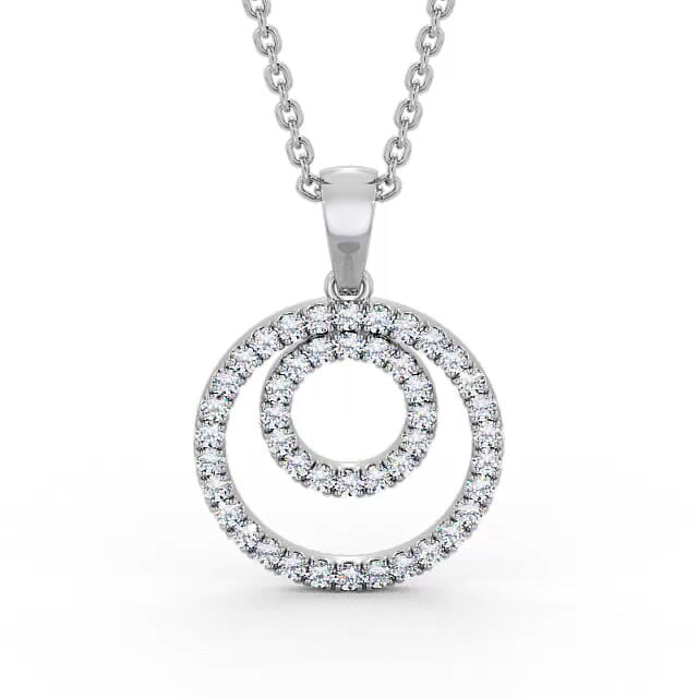 Double Circle Round Diamond Pendant 9K White Gold | Mariana