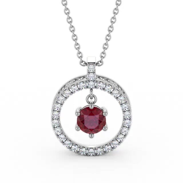 Circle Ruby and Diamond 1.56ct Pendant 18K White Gold | Lidia