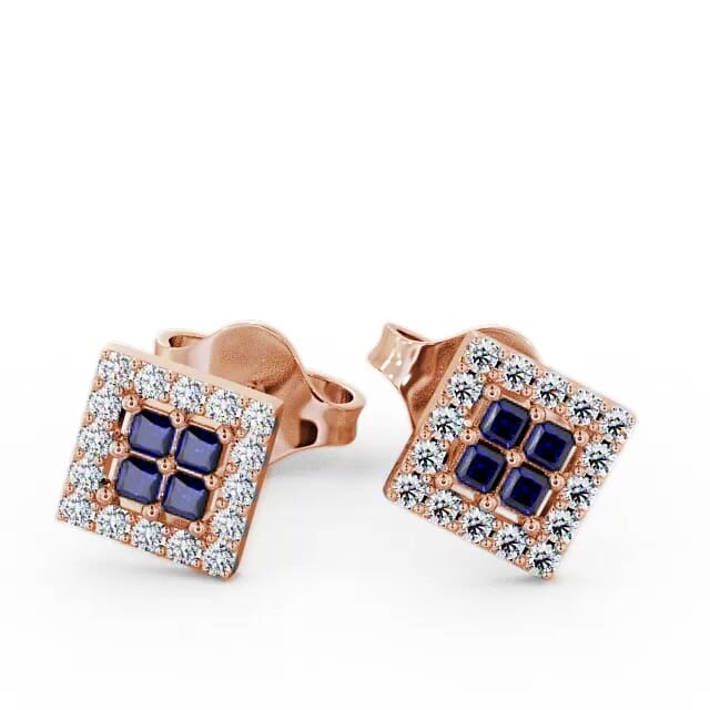 Mariel cluster blue sapphire and diamond 0.26ct earrings in a 9K Rose Gold setting. Each refined earring features four princess-shaped composite of blue sapphires wrapped in square-shaped frame of shimmering round diamonds for a wonderful appeal. Total gemstones weighs 0.16 Carat and total diamonds weighs 0.10 Carat. The total Carat weight is based on per pair. These earrings are available in a range of metal options with AAA grade gemstone. We offer a free design service for any customised changes that you may require.