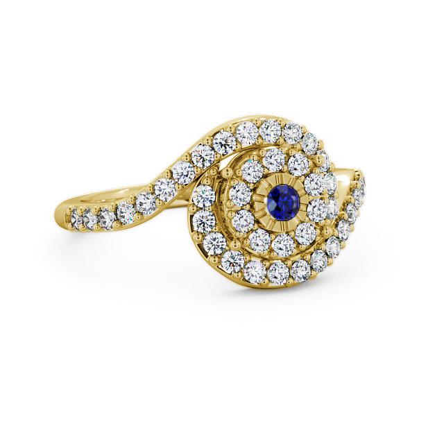 Selena Cluster blue sapphire and diamond 0.51ct ring in a 9K Yellow Gold setting. Classically trendy, this ring features a round blue sapphire held in centre hugged by swirling loops of round diamonds that continue down each shoulder. Sapphire weighs 0.09 Carat and diamonds weighs 0.42 Carat in total. This ring is available in a range of metal options with AAA grade gemstone. We offer a free design service for any customised changes that you may require.