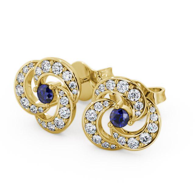 Cluster Blue Sapphire and Diamond 1.19ct Earrings 9K Yellow Gold | Melony
