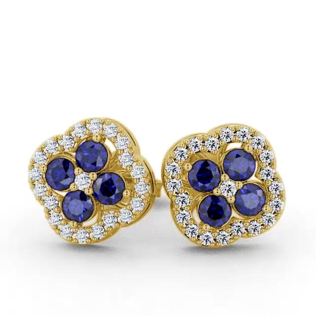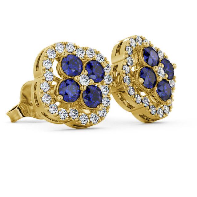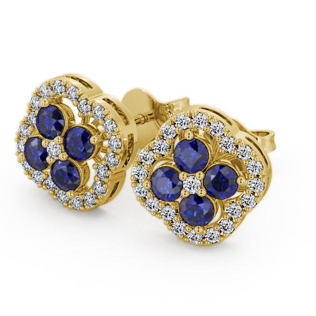 Cluster Blue Sapphire and Diamond 1.54ct Earrings 18K Yellow Gold | Kamille