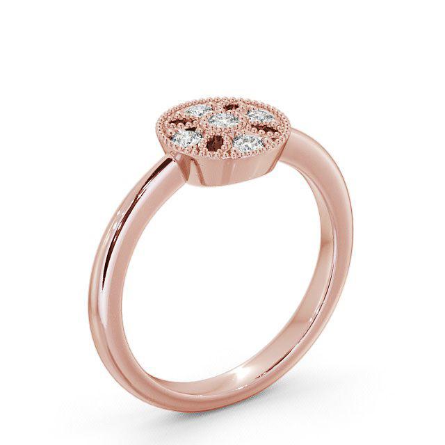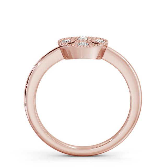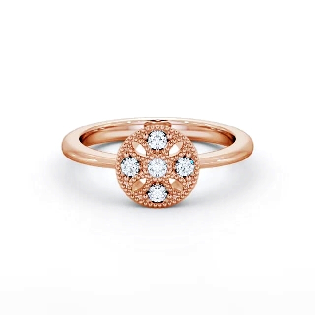 Estela cluster diamond ring in a 18K Rose Gold setting. Simply gorgeous, this enchanting ring is designed with round diamonds and beaded circular pattern set atop a sleek polished finish tapered band. This ring is available in a range of metal options and your choice of natural or lab grown diamonds. We offer a free design service for any customised changes that you may require.