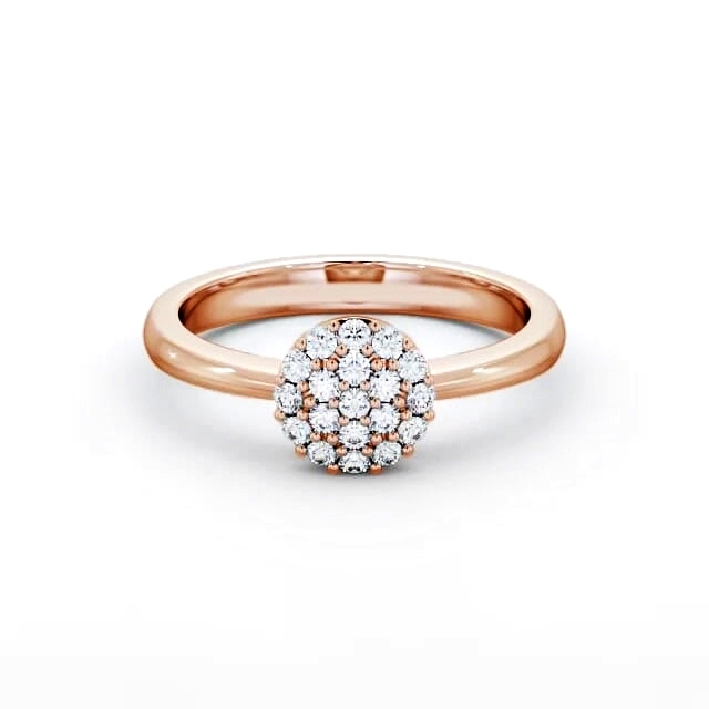 Evey cluster diamond ring in a 18K Rose Gold setting. Contemporary and modern, a stunning cluster of matching round diamonds is arranged atop a polished finish smooth shank. This ring is available in a range of metal options and your choice of natural or lab grown diamonds. We offer a free design service for any customised changes that you may require.