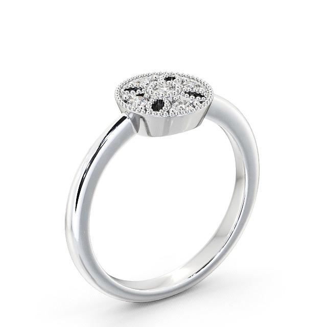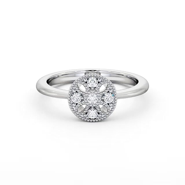 Estela cluster diamond ring in a 18K White Gold setting. Simply gorgeous, this enchanting ring is designed with round diamonds and beaded circular pattern set atop a sleek polished finish tapered band. This ring is available in a range of metal options and your choice of natural or lab grown diamonds. We offer a free design service for any customised changes that you may require.