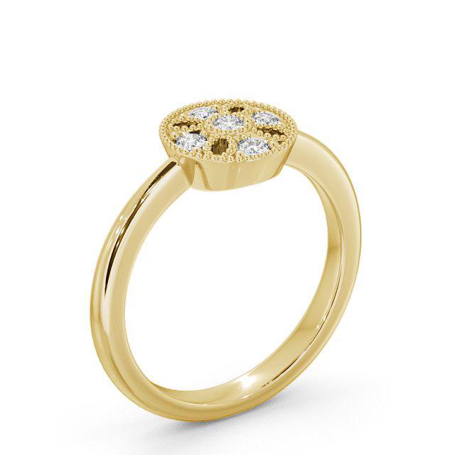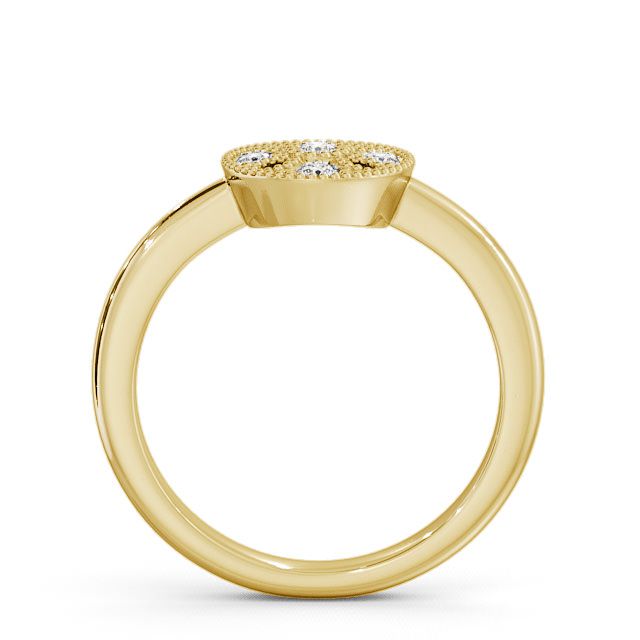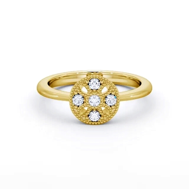 Estela cluster diamond ring in a 18K Yellow Gold setting. Simply gorgeous, this enchanting ring is designed with round diamonds and beaded circular pattern set atop a sleek polished finish tapered band. This ring is available in a range of metal options and your choice of natural or lab grown diamonds. We offer a free design service for any customised changes that you may require.