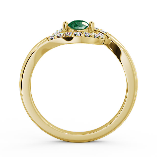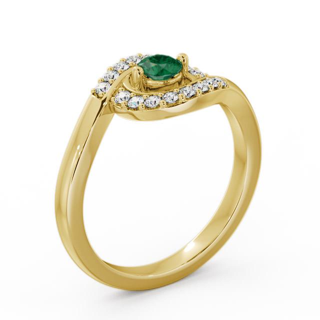 Teagen Cluster emerald and diamond 0.33ct ring in a 18K Yellow Gold setting. Simply breathtaking, this dazzling ring showcases a 0.17 Carat emerald gemstone in the centre of a bypass design flanked by 0.16 Carat total weight of sparkling round diamonds. This ring is available in a range of metal options with AAA grade gemstone. We offer a free design service for any customised changes that you may require.