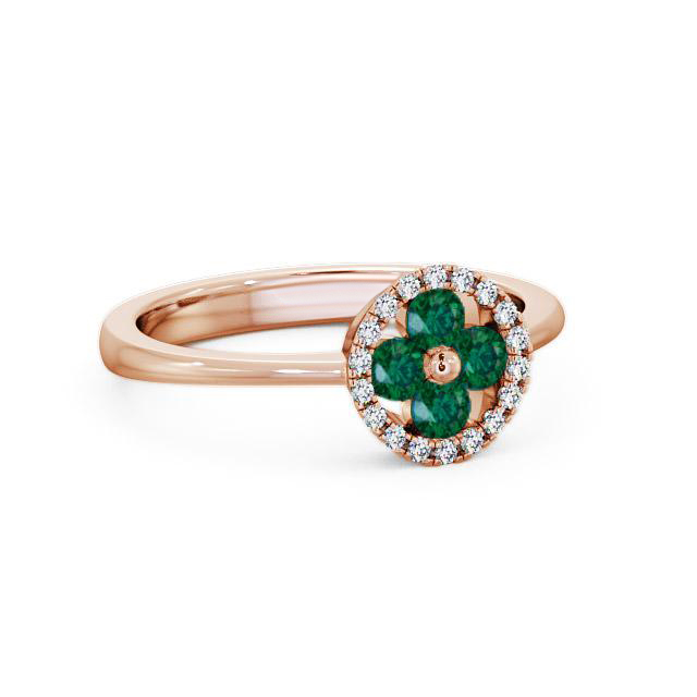 Annelise Cluster emerald and diamond 0.35ct ring in a 9K Rose Gold setting. Regal and radiant, this exquisite ring features a stunning arrangement of four beautiful round shaped emeralds in centre with a halo of round diamonds surrounding it. Total emeralds weighs 0.28 Carat and total diamonds weighs 0.07 Carat. This ring is available in a range of metal options with AAA grade gemstone. We offer a free design service for any customised changes that you may require.