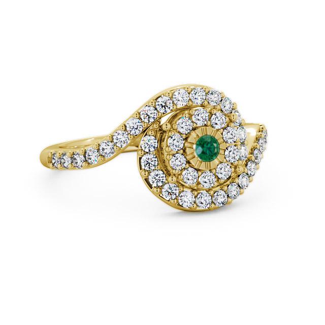 Selena Cluster emerald and diamond 0.49ct ring in a 9K Yellow Gold setting. Classically trendy, this ring features a round emerald held in centre hugged by swirling loops of round diamonds that continue down each shoulder. emerald weighs 0.07 Carat and diamonds weighs 0.42 Carat in total. This ring is available in a range of metal options with AAA grade gemstone. We offer a free design service for any customised changes that you may require.