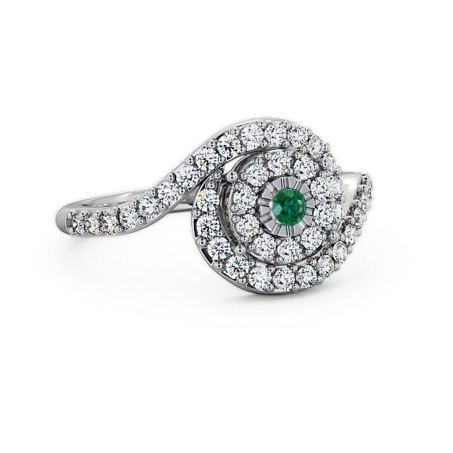 Selena Cluster emerald and diamond 0.49ct ring in a Palladium setting. Classically trendy, this ring features a round emerald held in centre hugged by swirling loops of round diamonds that continue down each shoulder. emerald weighs 0.07 Carat and diamonds weighs 0.42 Carat in total. This ring is available in a range of metal options with AAA grade gemstone. We offer a free design service for any customised changes that you may require.