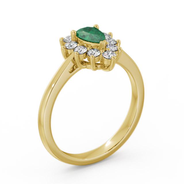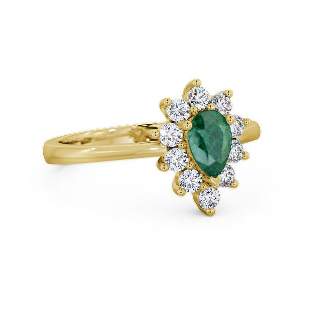 Kami Cluster emerald and diamond 0.80ct ring in a 18K Yellow Gold setting. This unique and enchanting ring showcases a gorgeous 0.45 Carat pear shaped emerald gemstone in the centre, flanked by sparkling round diamonds with a 0.35 Carat total weight set over a sleek polished finish band. This ring is available in a range of metal options with AAA grade gemstone. We offer a free design service for any customised changes that you may require.