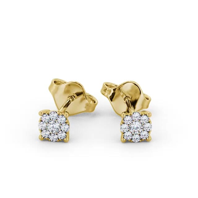 Cluster Halo Round Diamond Earrings 9K Yellow Gold | Kara