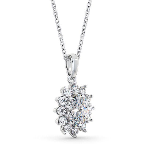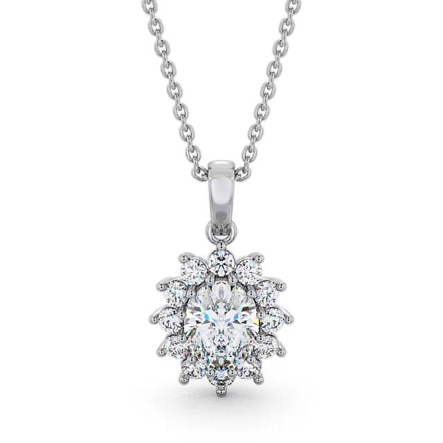 Cluster Oval Diamond Halo Style Pendant 18K White Gold | Jamaria