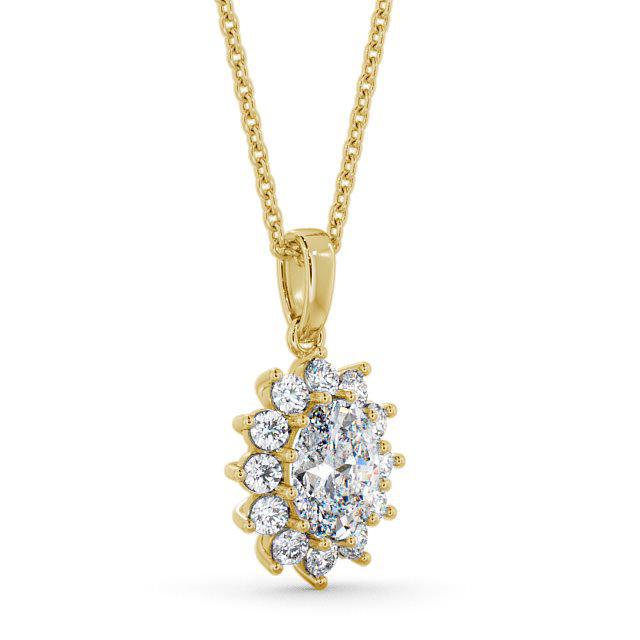 Cluster Oval Diamond Halo Style Pendant 9K Yellow Gold | Jamaria