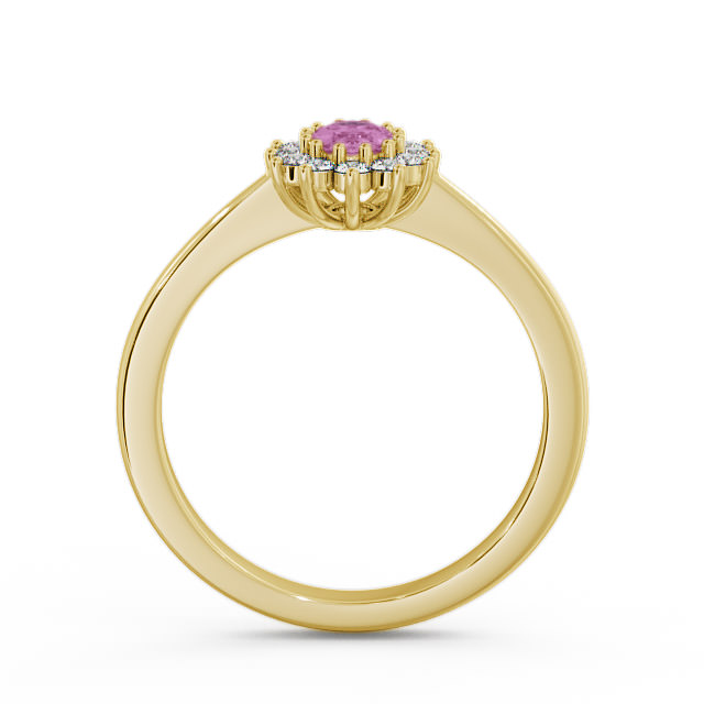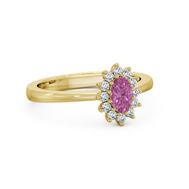Kelsey cluster pink sapphire and diamond 0.52ct ring in a 9K Yellow Gold setting. This exquisite ring depicts a centre oval shaped pink sapphire framed by a cluster of round diamonds in a traditional design. Sapphire weighs 0.40 Carat and total diamonds weighs 0.12 Carat. This ring is available in a range of metal options with AAA grade gemstone. We offer a free design service for any customised changes that you may require.