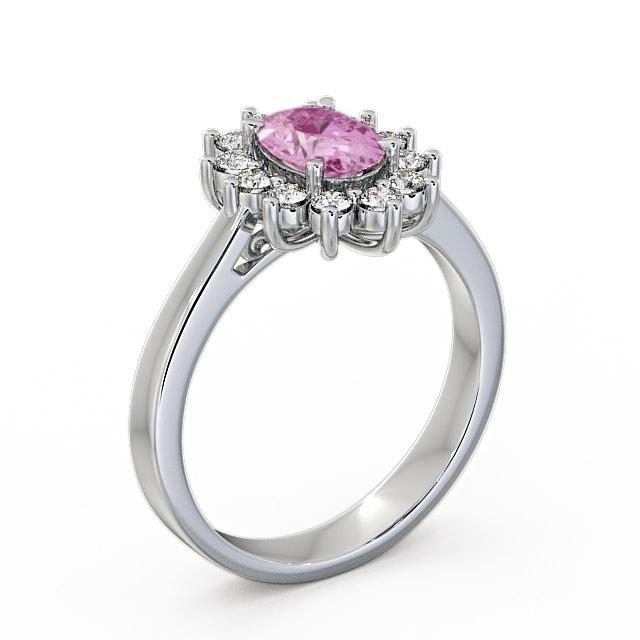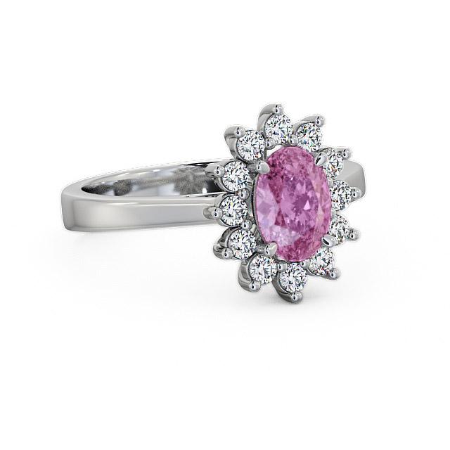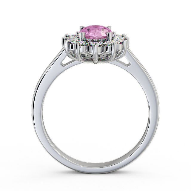 Jemima Cluster pink sapphire and diamond 1.42ct ring in a 9K White Gold setting. An elegant ring accentuated by a 1.00 Carat oval shaped pink sapphire in the centre, beautifully framed by 0.42 Carat total weight of round diamonds. This ring is available in a range of metal options with AAA grade gemstone. We offer a free design service for any customised changes that you may require.