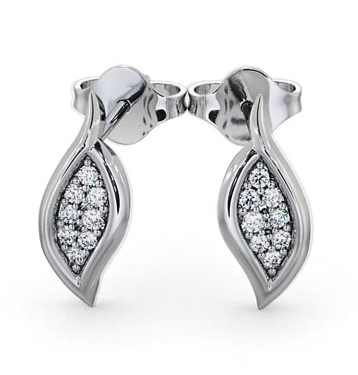 Cluster Round Diamond 0.34ct Ribbon Design Earrings 18K White Gold | Reagan