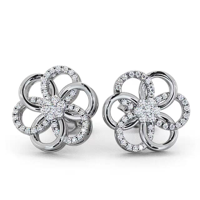Cluster Round Diamond 0.50ct Floral Design Earrings 9K White Gold | Abriana