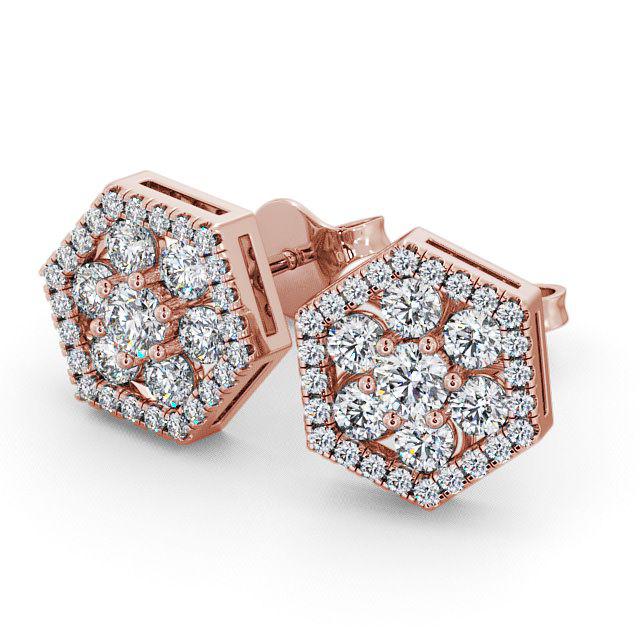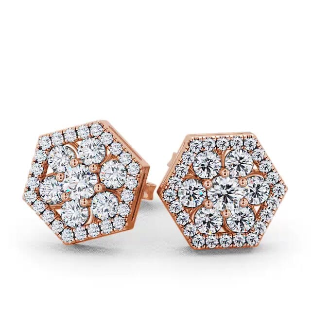Cluster Round Diamond Hexagon Design Earrings 18K Rose Gold | Lanah