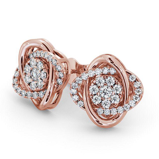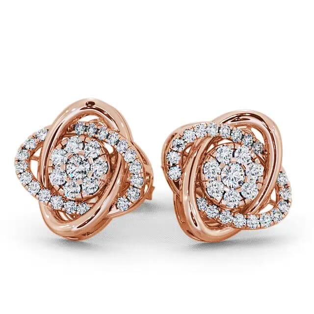Risal diamond cluster earrings in 18K Rose Gold. These knot patterned earrings ooze glowing radiance with a cluster of round diamonds set on a polished finish surface. The total diamond weight is based on per pair. These earrings are available in a range of metal options and your choice of natural or lab grown diamonds. We offer a free design service for any customised changes that you may require.