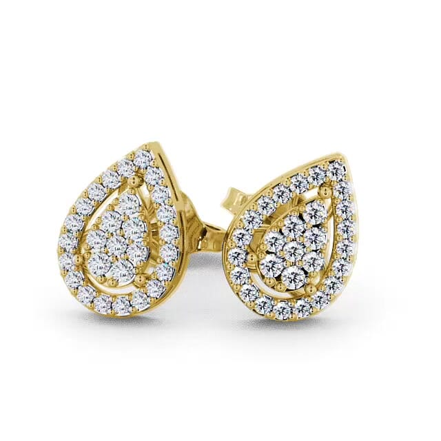 Cluster Round Diamond Pear Shape Design Earrings 18K Yellow Gold | Kinsey