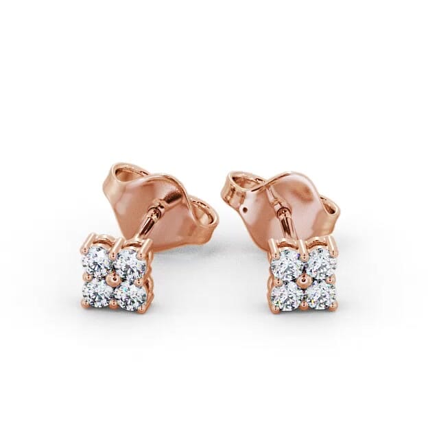 Jailene cluster diamond earrings in 9K Rose Gold. Simple in design, sublime in style, these stud earrings are complemented by a cluster of four round diamonds. The total diamond weight is based on per pair. These earrings are available in a range of metal options and your choice of natural or lab grown diamonds. We offer a free design service for any customised changes that you may require.