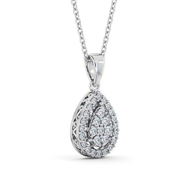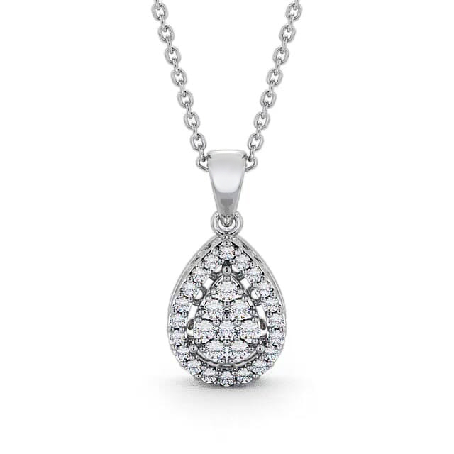 Anessa cluster diamond pendant in 18K White Gold. This simple and trendy pendant features a brilliant pear-shaped cluster of round diamonds framed by additional small round diamonds for a spectacular look. This pendant is available in a range of metal and chain options with your choice of natural or lab grown diamonds. We offer a free design service for any customised changes that you may require.