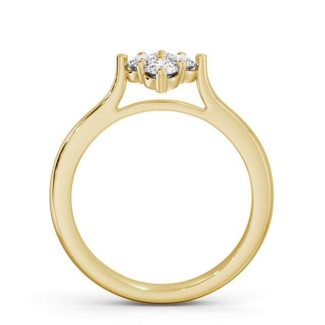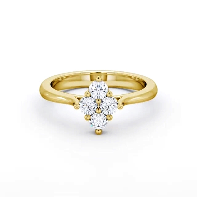 Nari cluster diamond ring in a marquise shaped 18K Yellow Gold setting. Simple yet dazzling, this diamond ring depicts a sparkling cluster of four round diamonds set amidst prongs in the centre. This ring is available in a range of metal options and your choice of natural or lab grown diamonds. We offer a free design service for any customised changes that you may require.