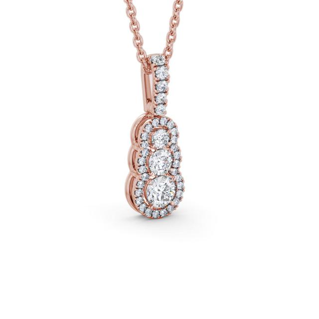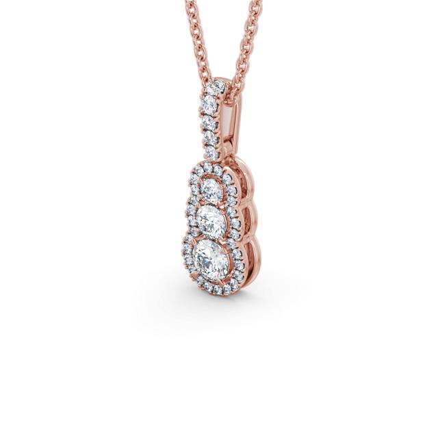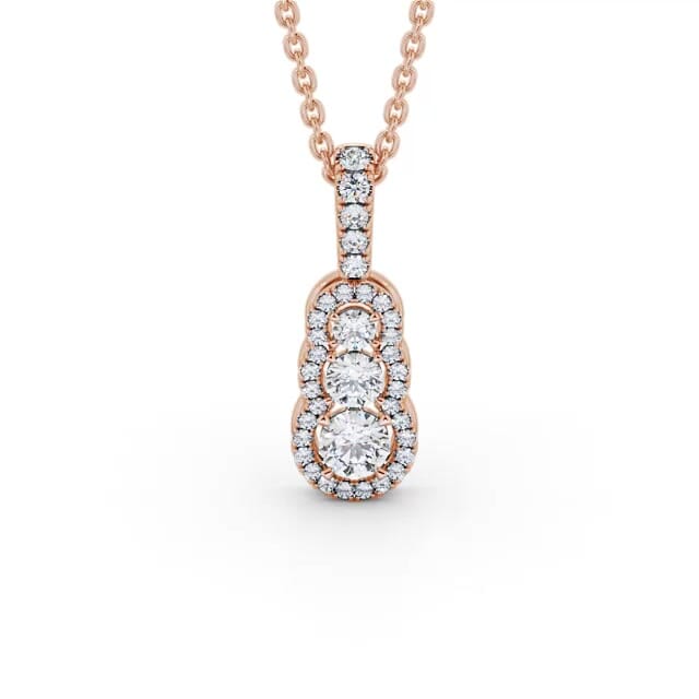 Coralee cluster style diamond pendant in 9K Rose Gold. This stunning elongated pendant showcases three graduated round diamonds, framed by smaller round diamonds along with a diamond-lined bail. This pendant is available in a range of metal and chain options with your choice of natural or lab grown diamonds. We offer a free design service for any customised changes that you may require.