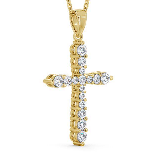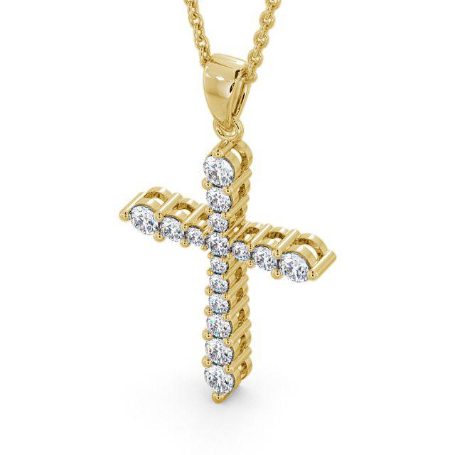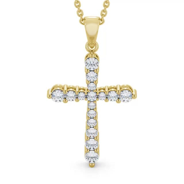 Julisa cross diamond pendant in 9K Yellow Gold. Classic religious symbol with a modern twist, this cross design pendant is ornamented with sparkling prong set round diamonds. This pendant is available in a range of metal and chain options with your choice of natural or lab grown diamonds. We offer a free design service for any customised changes that you may require.