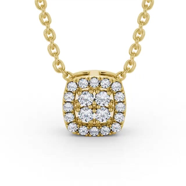 Cushion Design Round Diamond Cluster Pendant 9K Yellow Gold | Mahira